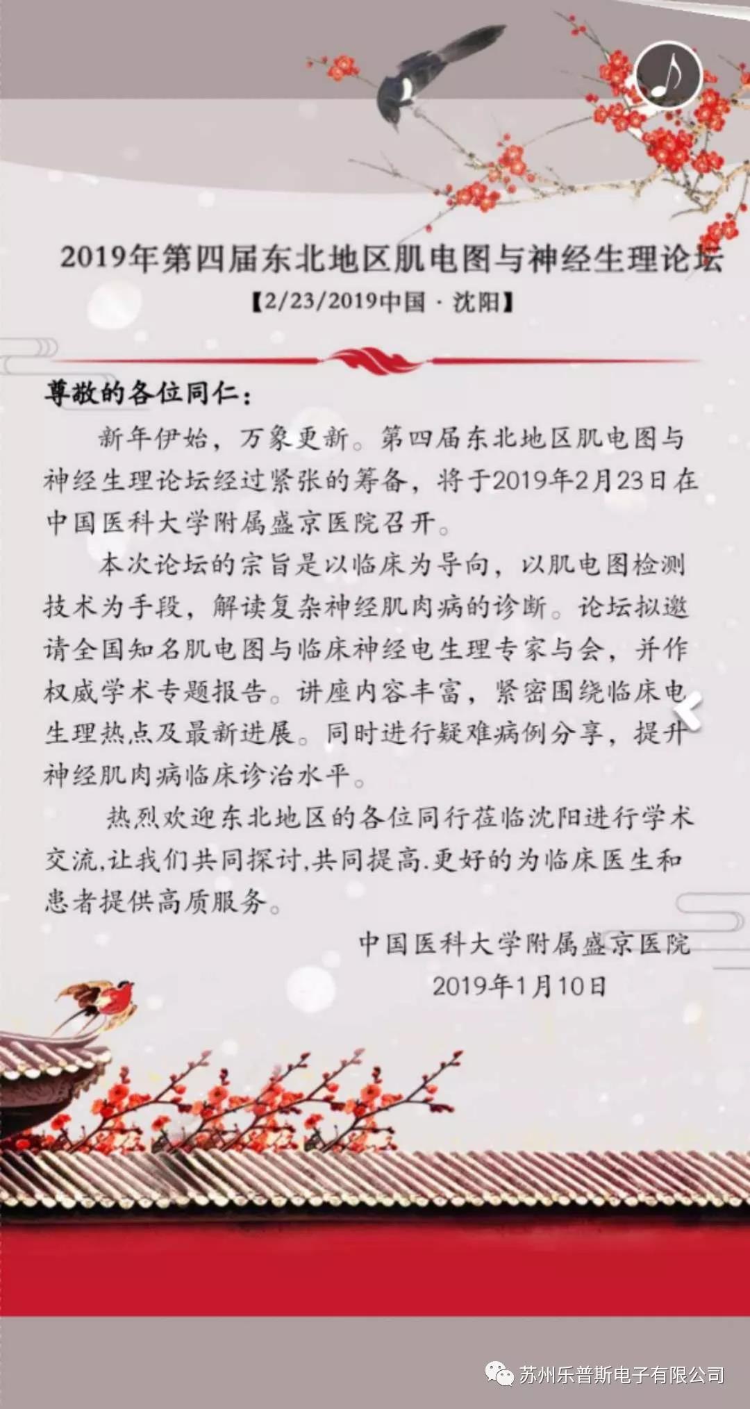 Everything is renewed at the beginning of the New Year. The 4th Northeast Forum on Electromyography and Neuroelectrophysiology was held in Shengjing Hospital affiliated to China Medical University on February 23, 2019. You are cordially invited to participate.